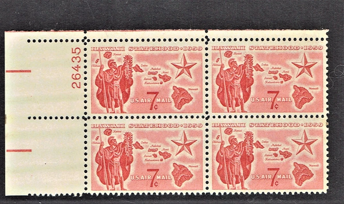 1959 U.S. AIRMAIL 7c Map of Hawaii Plt#Blk Sc#C55 M/NH/OG