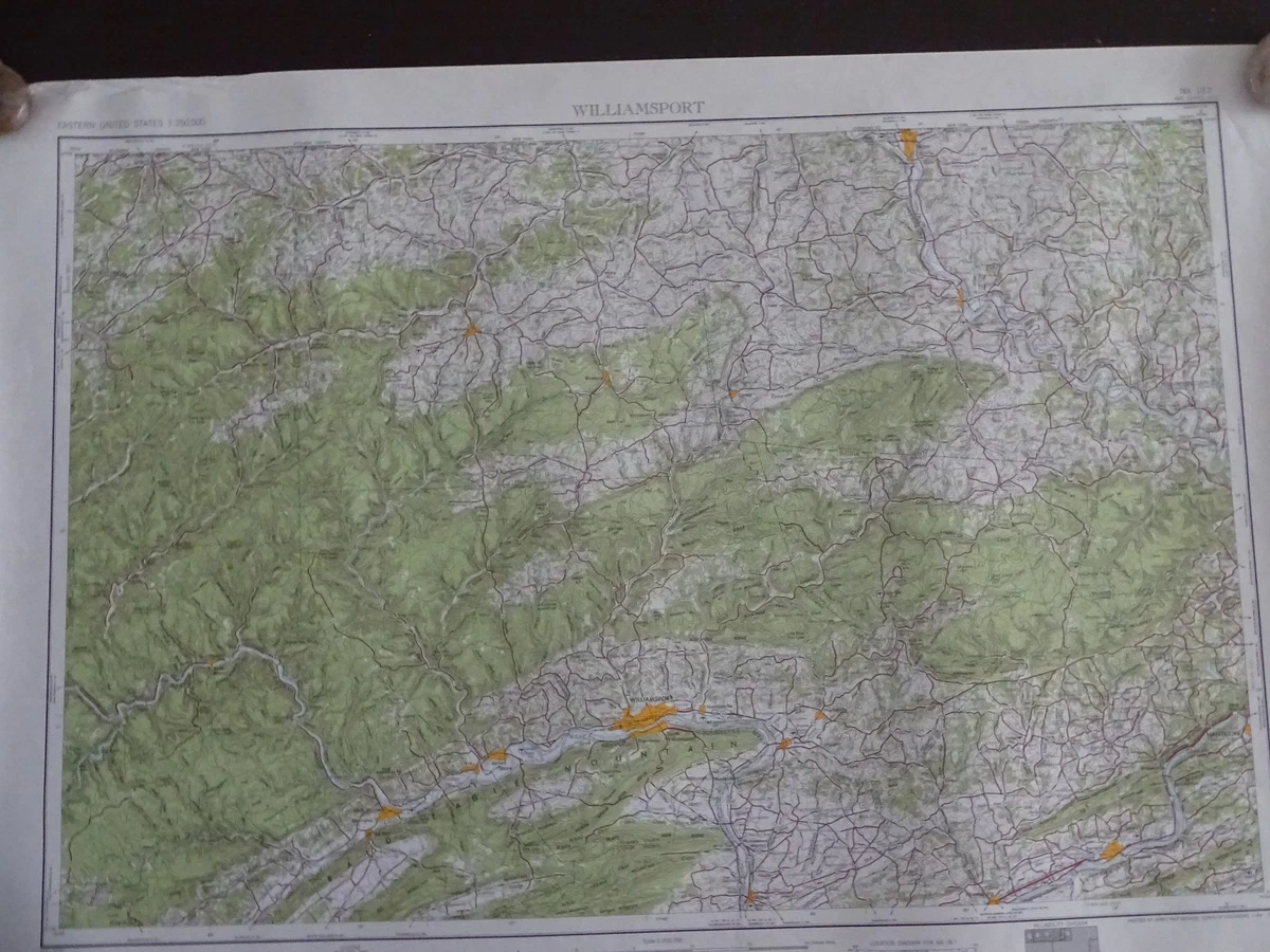 1949 ANTIQUE Map of Williamsport, PA & Parts of NY Topographic
